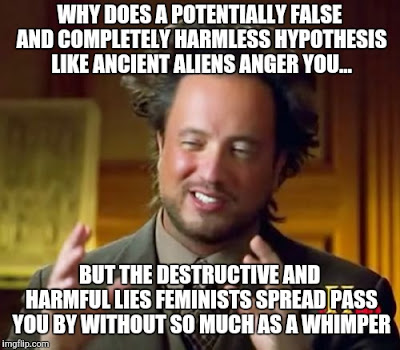The MEN hosting the show "Ancient Aluens" make the claim that aliens visited Earth in the past, and some people get enraged, some people pour on the ridicule, some people scream how stupid they are...